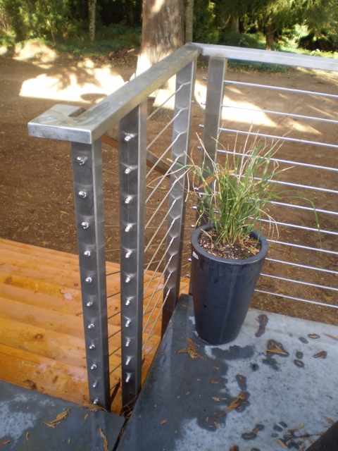 Stainless Steel Cable Railing Cable Guardrail With Wood Top RailStainless Steel Cable with Cedar Top RailCable Railing With Geometric EndsEntirely Stainless Steel Cable Rails