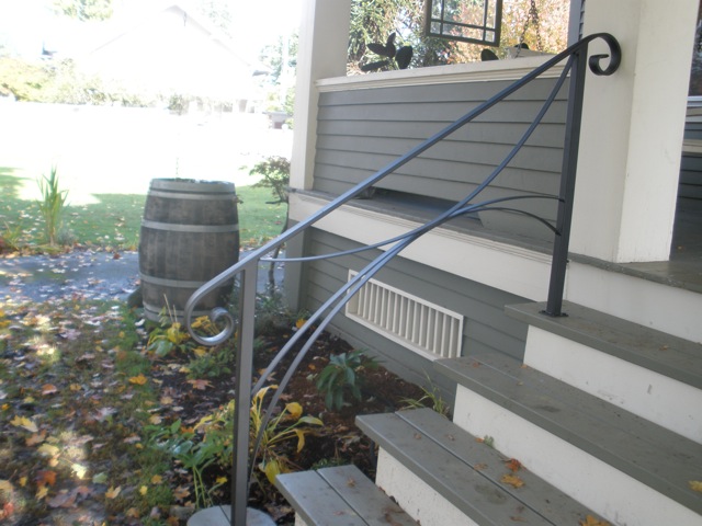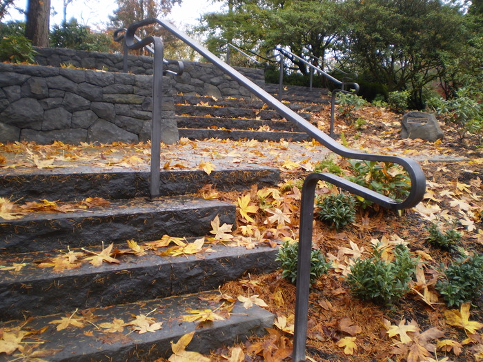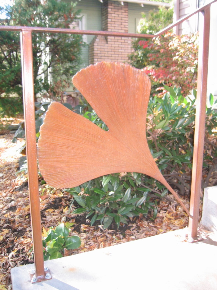 Diamond Design HandrailHalf-Round With Twisted PostsBlacksmithed Stainless Steel With Graphite FinishBasic Steel Handrail With Spider and WebLamb’s Tongue Handrail With Dragonfly DetailHandrail With Ginkgo LeafBanana SlugHandrail With Arches And Spirals